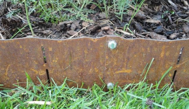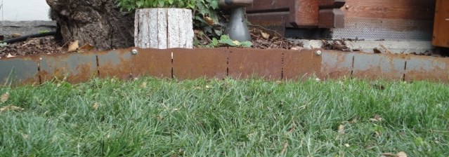 Formschöne Rasenkante aus Stahlblech, hält Ihren Rindenmulch oder Kies im Beet und den Rasen draußen.
