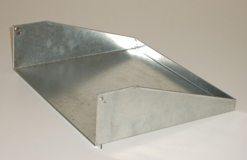 Verzinktes Stahlblech, auf beiden Seiten ein Metallspitz zum Einhaken.