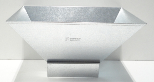 Verzinktes Stahlblech, der Trichter hat unten einen eckigen Einfüllstutzen 18 x 5 cm.