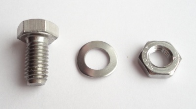 Lieferumfang: Sechskantschraube, Halbe-Mutter, Federscheibe.